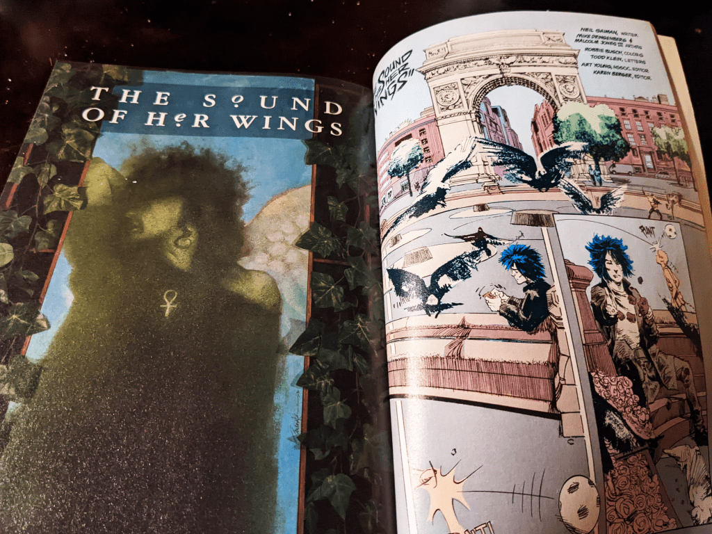 In a New York Comic Con interview between Kevin Smith and the creators of the Sandman Audible drama, Smith reveals that the “Sound of Her Wings,” one of the stories in Preludes and Nocturnes, “came to him on his deathbed. He summarizes a scene in the story where an old man realizes it is his time to die and protests, “What did I get?” Death responds, “You got what everyone gets. You got a life.” He says Death’s response gave him comfort at a moment in his own life when he wondered about his mortality after a major heart attack.